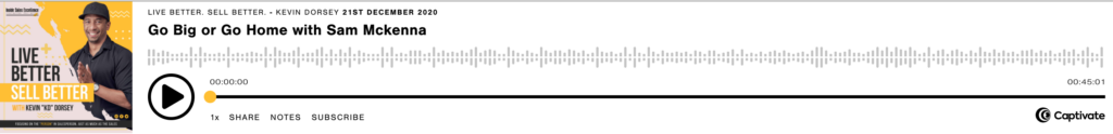 Listen to Sam McKenna drop some sales knowledge when she joins Kevin “KD” Dorsey, VP of Inside Sales, PatientPop + LinkedIn Influencer, on his popular Inside Sales Excellence: Live Better. Sell Better podcast. Sam will chat what ‘enterprise’ sales means to her and her one piece of advice for someone to LIVE better as a salesperson.