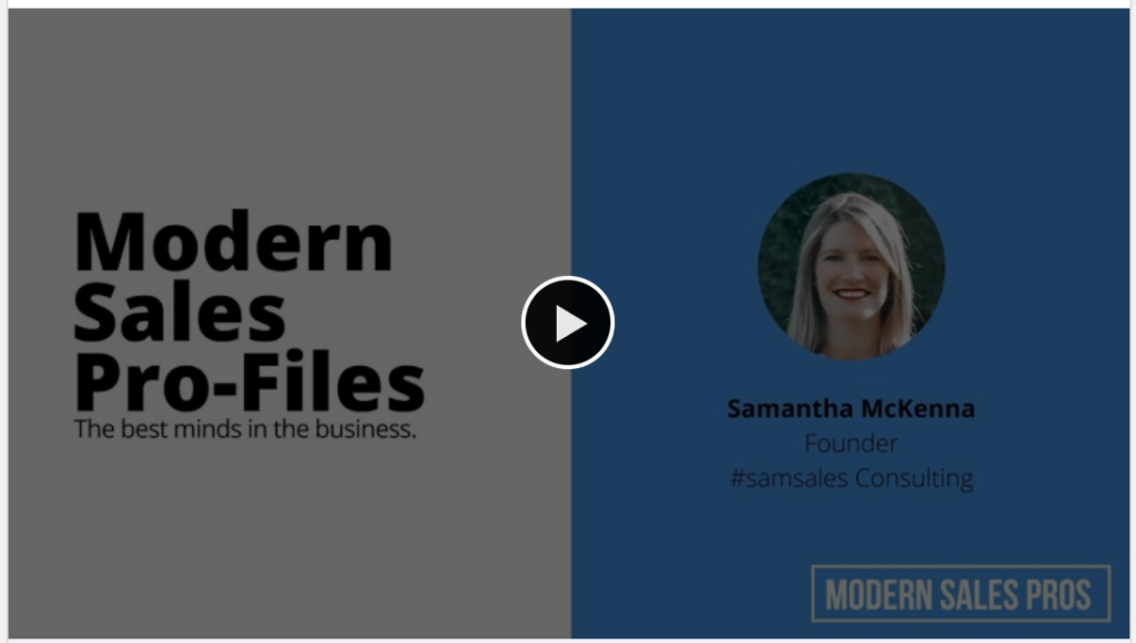Interested in a deep dive into Sam’s path to success? Hear it from the source in this Pro-file with Sam McKenna from Modern Sales Pros. Check out this video to learn more about Sam’s journey and her advice on how to be successful at sales: