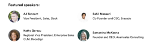 Traditional methods for connecting with customers no longer apply. On-site demos and in-person events have been replaced by digital interactions. The interesting twist? Most buyers like it that way. Join sales leaders from Docusign, #samsales Consulting, Slack, and Bravado as they share their best advice for building relationships that drive deals forward.
